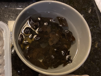 Soak “wood ears” in warm water for 1 hour.
