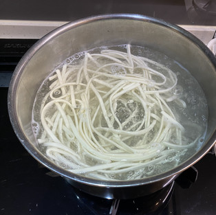 Heat up your bowl with water and sprinkle in some salt to flavor the noodles. Put the noodles in the bowl and let the water boil the noodles for approximately 6 minutes or when the noodles seem Al dente (you want your noodles to be at the consistency that you prefer just as when you take it out from the bowl as there will be no further cooking of your noodles after this step). Refer P1